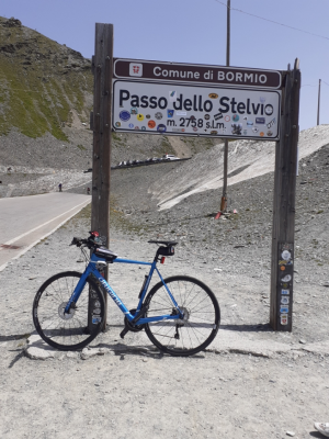 "Au terme d'un séjour de 7 jours dans les Dolomites dans des conditions difficiles sur des routes parfois très défoncées, je peux dire que je ne regrette pas mon achat. Rien n'a redire : confort, nervosité et sécurité avec de très bons freins à disques bien utiles dans les fortes descentes et sous la pluie. Parmi les 12 participants beaucoup l'ont trouvé très beau, l'ont essayé et ont été vraiment agréablement surpris. Je crois avoir suscité leur curiosité !"