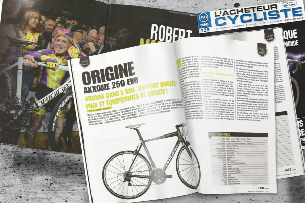 « L’Origine est le choix de raison et de sportivité, un vélo de "compèt’" abordable, ultra efficace et sûr. Sans oublier son confort affolant » {...} « C’est une leçon ! En termes de rapport prix/poids/rendement,