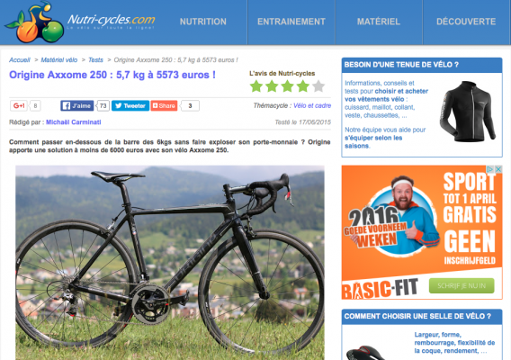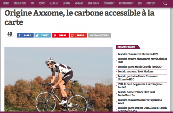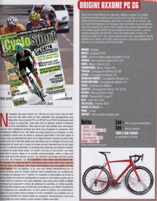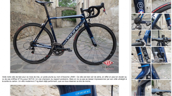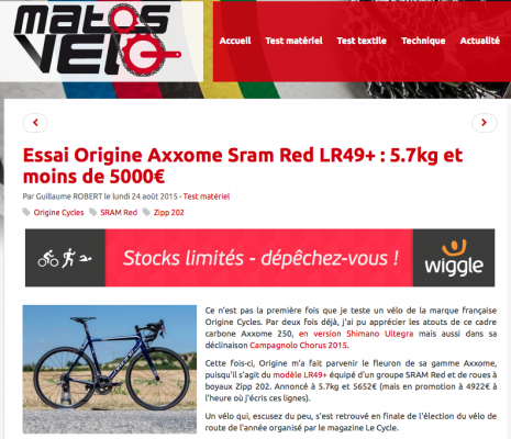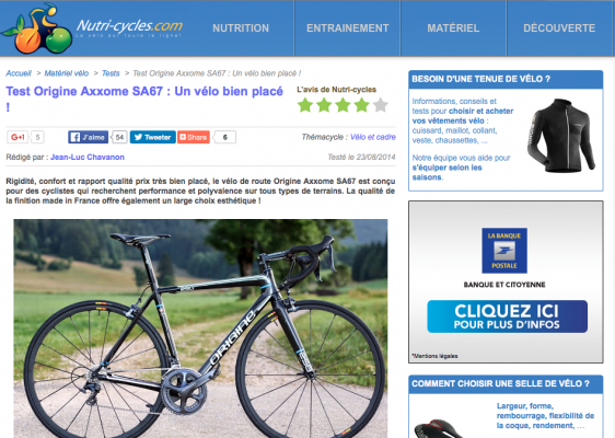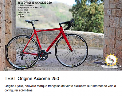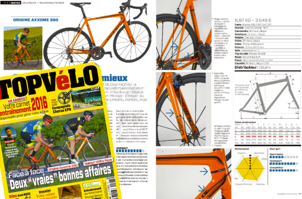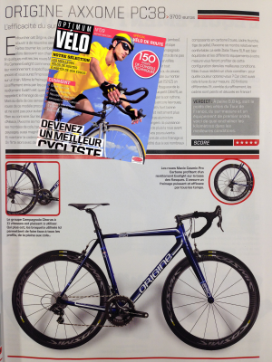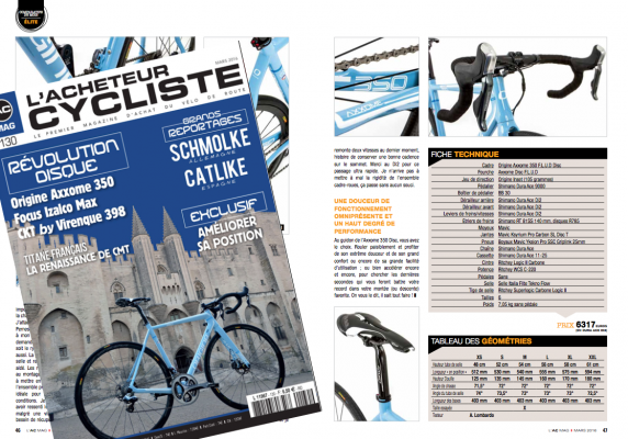 Origine Axxome 350 premier Ex Aequo du comparatif expert de L'acheteur Cycliste Novembre / Decembre 2015 et Janvier 2016