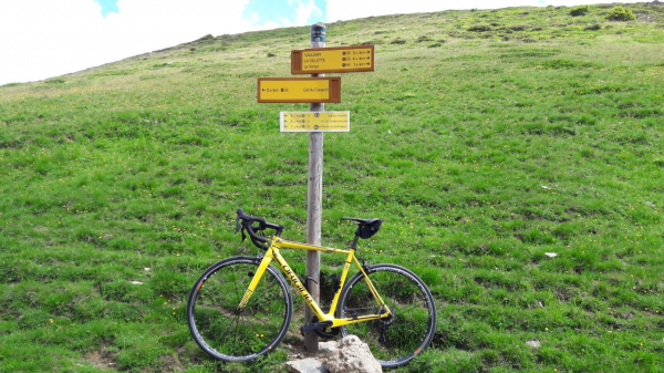 Après plus de 600 bornes parcourues et quelques sorties alpestres (ici au sommet du magnifique col du sabot), je peux dire que je suis pleinement satisfait, le vélo inspire la confiance dans les descentes de cols et il est très efficace en relance. Le confort est au rendez-vous et les roues Campa offrent un beau rendement.