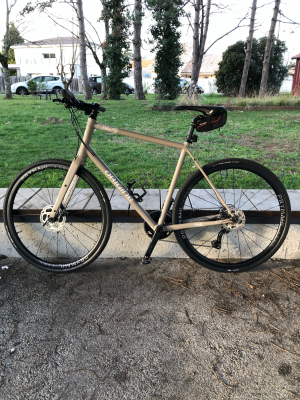 Et personnellement petit un regret, un seul dont je suis entièrement responsable, le choix délibéré d’un cintre droit qui certes apporte plus de confort sur petites distances et en agglomération mais ne remplace pas les avantages du cintre route sur moyennes et longues distances."