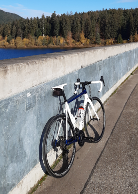 Voilà ! Le bijou tant attendu est arrivé! Sitôt reçu, sitôt dessus .... 450 Km en une semaine et demi. Première sensation pour un "jeune" retraité qui recommence le vélo de route : sûreté , confiance, confort, réactivité. Le plaisir à l'état pur... J'ai commencé par tourner les jambes sur du plat puis quelques bosses. Le vélo est très franc du collier, hyper réactif,