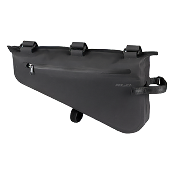 Sacoche de cadre de 5,5L imperméable. Fermeture éclair étanche Fixation par trois fermetures velcro® et deux sangles Logo réfléchissant 40x6x23 cm Modèle XLC BA-W32