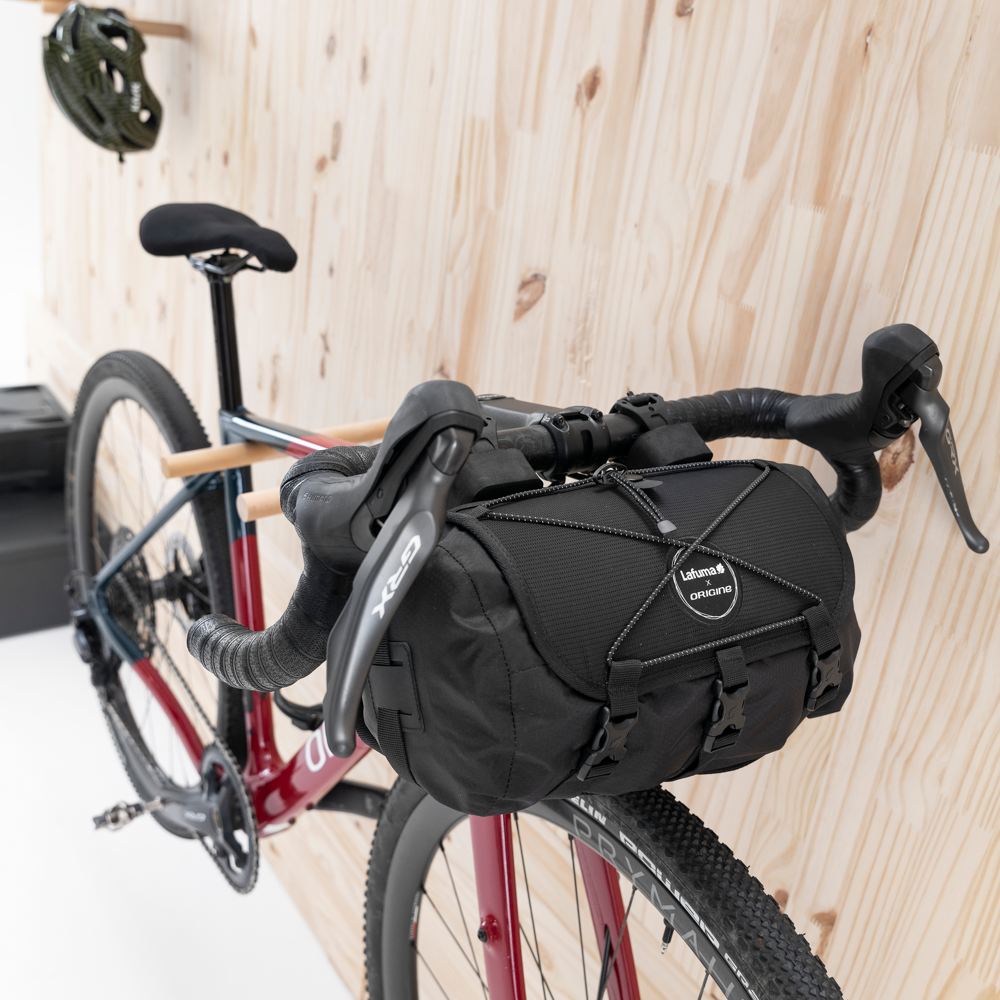 Développée en collaboration exclusive entre Lafuma et ORIGINE, cette sacoche de cintre est conçue pour les explorations à vélo, fusionnant le savoir-faire de la bagagerie Lafuma avec la modularité technique d'Origine. Le ""Handle Bag"" pour votre guidon permet d'emporter l'équipement nécessaire, avec une structure réglable pour accueillir deux litrages de liner (6L et 10L) grâce aux deux sangles de compression équipées de boucles. Il se fixe solidement à l’aide de deux sangles où des cales d’espacement viennent stabiliser la structure.