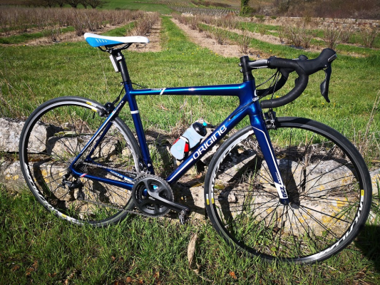 "Après avoir découvert Origine en regardant un Tour de France - je me souviens du vélo vert sur le plateau de la chaîne Eurosport, comme de nombreux clients, j'ai passé des heures à configurer le vélo de mes rêves et j'avoue avoir mis un peu de temps à me décider. Un vrai bonheur de jouer avec le configurateur qui offre une image très vraie de ce à quoi ressemblera votre futur vélo. Lorsqu'au printemps 2017, j'ai porté mon choix sur un vélo Origine , j'ai contacté M. Morel car j'avais un doute sur la taille de cadre à choisir. J'ai suivi ses conseils et j'ai choisi un S pour mon mètre 73. Je dois avouer que le vélo est plutôt bien proportionné avec une douille de direction assez haute pour cette taille. Le vélo a été livré avec une semaine d'avance par rapport au délai annoncé. J'ai fait changer la potence pour une plus courte. J'ai un très beau vélo pour un prix très compétitif. Vous offrez un réel service de conseil. Votre offre est très claire. Je recommande vos vélos à 100%. Et le petit détail qui moi, me plaît beaucoup, c'est le petit drapeau français sur les bases. Je suis très fier de rouler sur un vélo conçu, peint et assemblé en France. Longue vie à Origine-Cycles.""