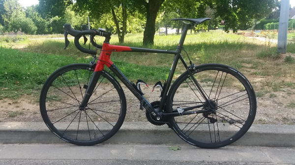 "Bonjour, m'étant lancé dans la course route avec mon fils, je cherchais un vélo plutôt typé compétition tout en ayant un vélo facile vu mon niveau relatif de débutant (course à pieds et VTT pratiqué régulièrement depuis de nombreuse années). Après avoir fouiné sur le net, je suis tombé sur la marque Origine, de nombreux tests, et surtout le site avec un très bon configurateur. Cela a été décisif pour moi, la possibilité de choisir quasiment sa configuration voulue. Le contact avec Fabien a été très constructif, et la possibilité d'aller voir et chercher mon vélo à l'usine un plus. Résultat : AXOME 350 taille L, ultégra mécanique, fibre apparente et rouge, pédalier Rotor 52/34. Je roule désormais avec mes roues shamal Mille, et je suis enchanté autant par son look que par son comportement. Légèreté, rigidité, maniabilité, bref je me sens bien dessus, surtout après un changement de potence vu avec Fabien. Mon seul regret, ne pas avoir franchi le pas avec un groupe électrique…. Aucun regret en tout cas sur le modèle acheté qui répond à mes attentes et permet d'avoir l'originalité dans les pelotons !""