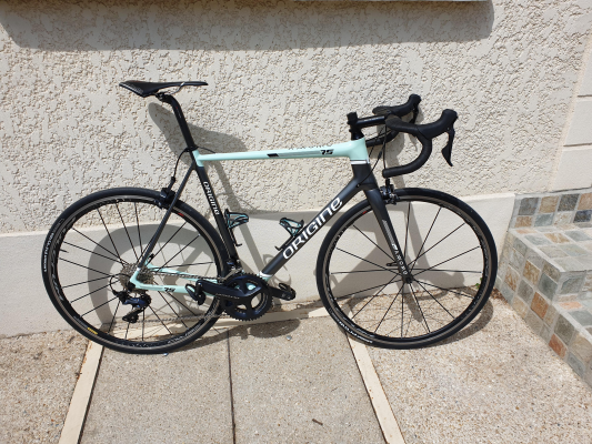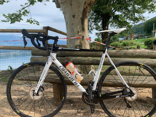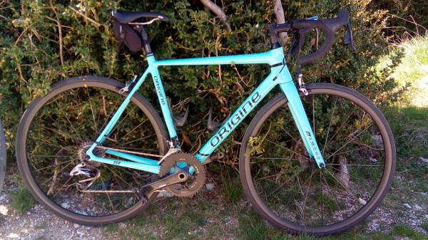 Je suis l'heureux possesseur de l'Axxome 350 d'Origine depuis début juillet 2019. Après une visite de l'usine à Somain en juillet 2018, j'ai longtemps configuré sur leur site avant de finaliser ma commande : J'ai opté pour le groupe Ultégra Di2 et pour les roues Campagnolo Shamal.