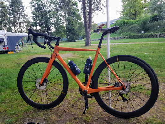 Voilà première petite sortie avec mon axxome 350.(60km).WAOUH!!Aprés 40 années de pratique avec des vélos différents de marques françaises européennes américaines me voilà encore surpris par cette monture! ce vélo est tout simplement jouissif! une réactivité incroyable assis comme en danseuse.bravo origine d'avoir conçu et réalisé ce cadre qui avec une géométrie "classique