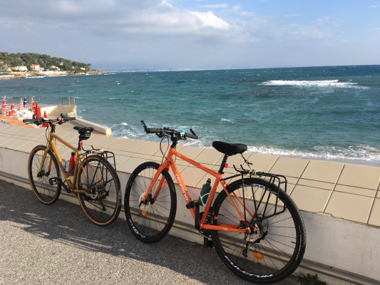 Premiers coups de pédales autour du cap d’Antibes avec son compagnon de route.