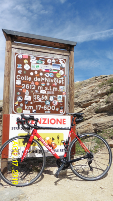 Après avoir grimpé l'essentiel de ce qui se trouve autour d'Annecy, vous trouverez la photo de mon vélo lors d'un petit détour en Italie."