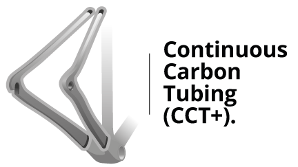 Het CCT+® achterframe zorgt voor het perfecte huwelijk tussen comfort en prestaties. De liggende en staande achtervorken van de Graxx frames worden uit één doorlopende carbon buis gemaakt waardoor er tussen de achterkant van het bracket en de aanhechting van de staande achtervork aan de zitbuis geen enkele harde plek zit. (CCT+® staat voor Continuous Carbon Tubing®.) De trillingen die veroorzaakt worden door de oneffenheden in het terrein worden dankzij de CCT+® constructie over de volledige achtertrein van de fiets verdeeld zodat de fietser van meer comfort geniet.